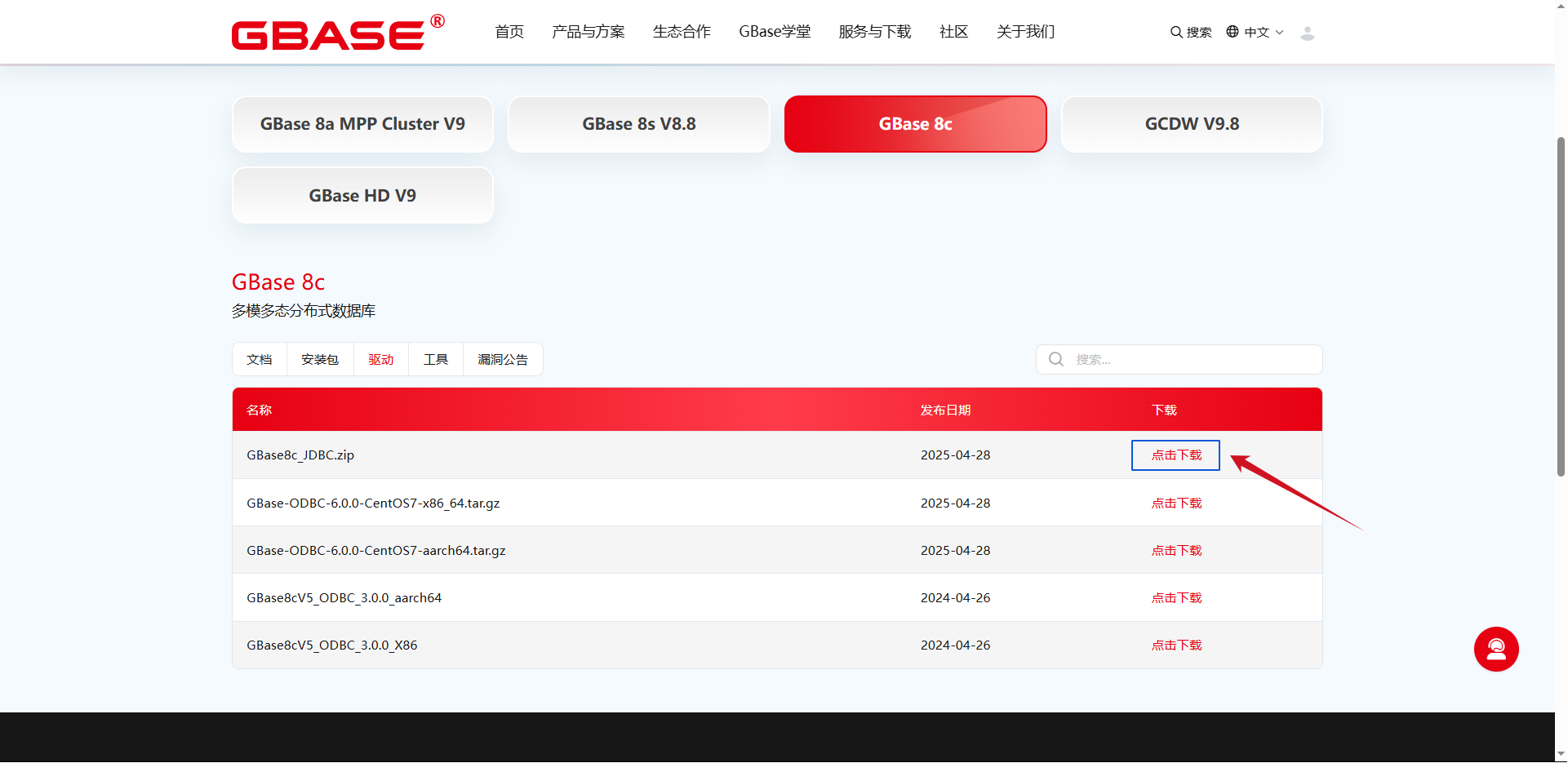下载GBase8c JDBC驱动